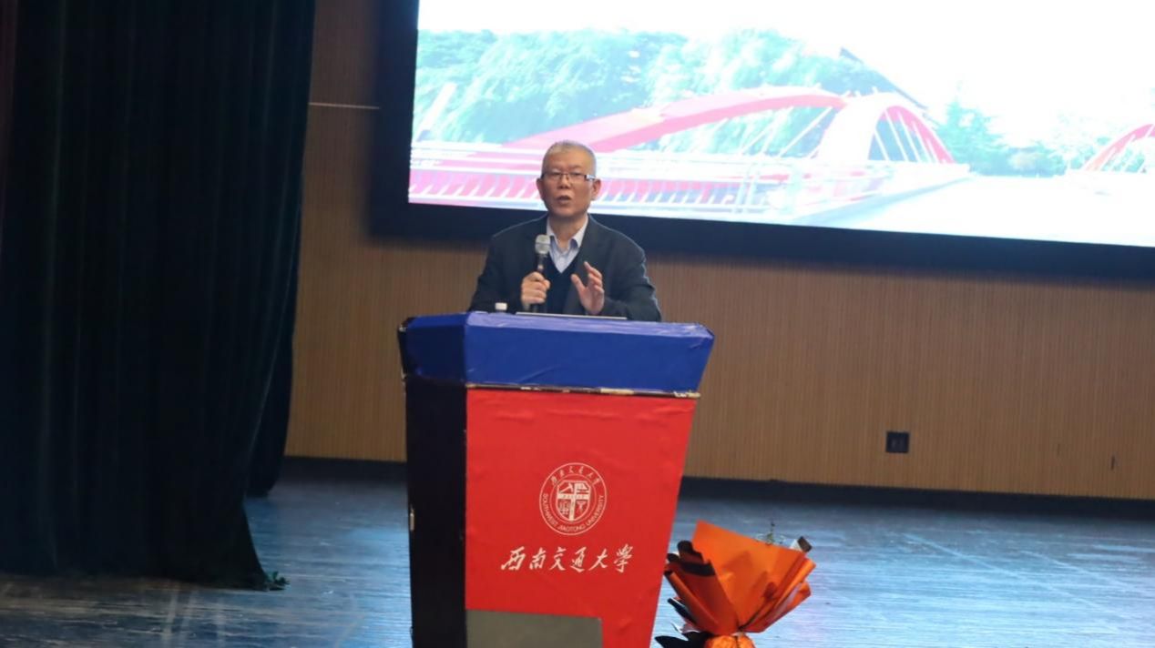 土木工程学院桥梁工程系李亚东教授,从桥梁发展的历史及中国桥梁取得的成就介绍了桥梁之美。李教授结合我国杰出工程学家詹天佑、茅以升先生的求学经历,从“修业、进德、守规、处事”四个方面对同学们寄予厚望。