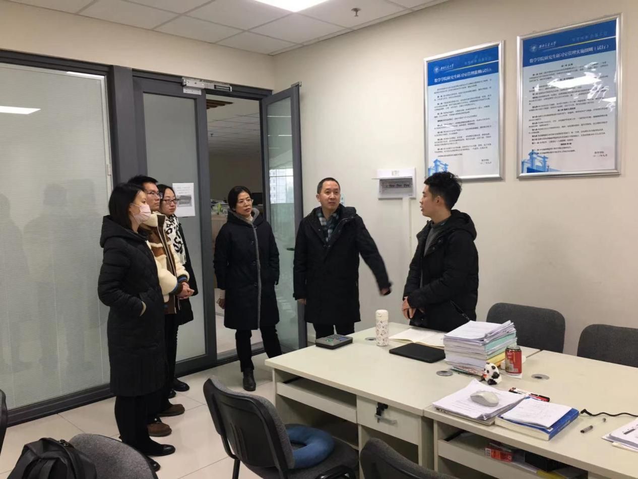 最后,检查组来到公共数学教学研究基地、数据科学与智能计算实验室、系统可信性自动验证国家地方联合工程实验室、数学实验实践中心、数学与信息交叉实验室,按照教育部与学校的实验室安全管理制度,重点检查了实验室的安全隐患,提出了相关整改意见:将部分插座固定安装在实验桌侧面,实验室物品摆放力求整洁规范,离开实验室打卡制度的严格落实,实验室定期开展安全检查与卫生情况整顿工作,做好安全隐患排查的闭环管理工作等。