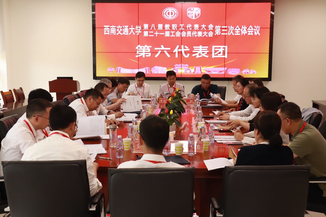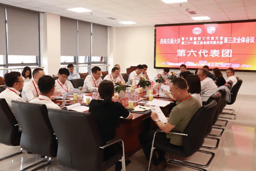 第八届教代会暨第二十一届工代会第三次全体会议第六代表团会议于犀浦校区3号教学楼30423会议室举办,校党委书记余敏明深入代表团并莅临会议现场。会议由第六代表团团长徐革主持,成人直播