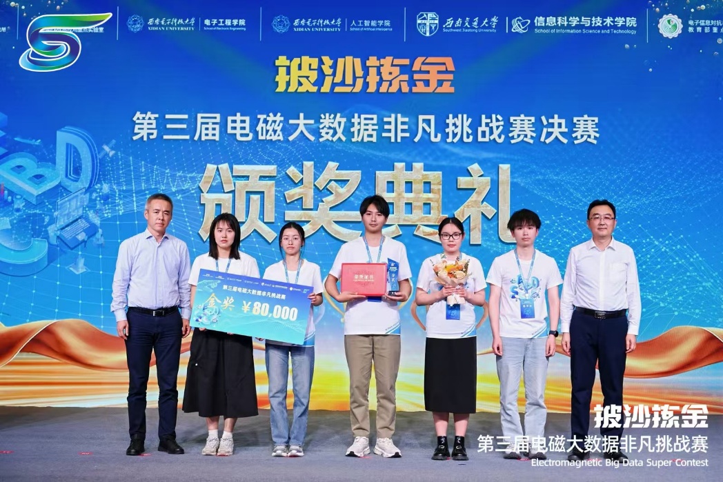 研究生易曾瑞(队长)、殷世玉、谭睿洁、冯皓宇和信息科学与技术学院研究生孙文鑫组成的“电磁承锋”战队,凭借创新的算法设计和扎实的技术实现能力,以总成绩第一的优异表现斩获大赛唯一金奖。