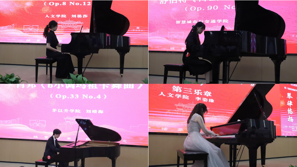 本次钢琴大赛旨在弘扬校园美育文化,搭建钢琴艺术交流平台,营造多元艺术氛围。经过初赛、复赛环节,来自各个学院的八名选手晋级决赛,用指尖讲述音乐故事,用才华诠释钢琴魅力。