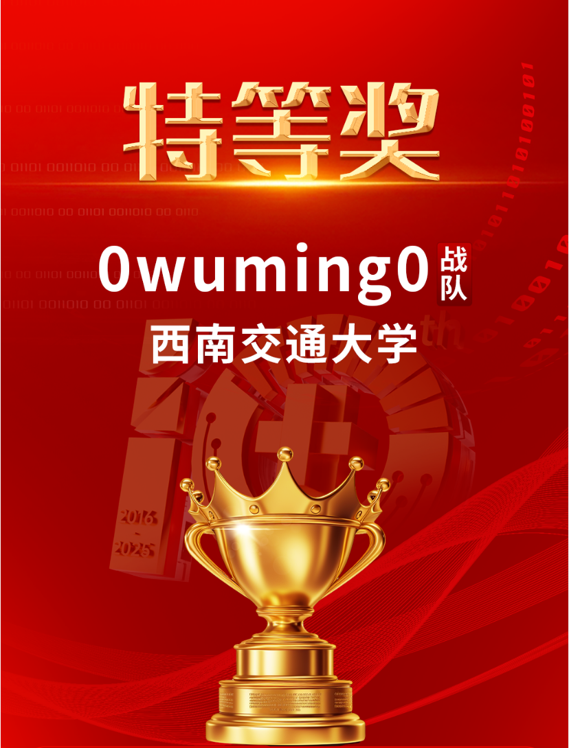 郑星宇同学和信息学院吴怀尧同学主持的0wuming0战队在本次大赛中表现优异,斩获大赛唯一特等奖,战队指导老师、“数学与信息交叉”团队负责人周正春教授获“优秀指导教师”荣誉称号和“伯乐奖”。这是继周正春教授今年4月份指导学生获得第三届电磁大数据非凡挑战赛全国唯一金奖后又一殊誉。
