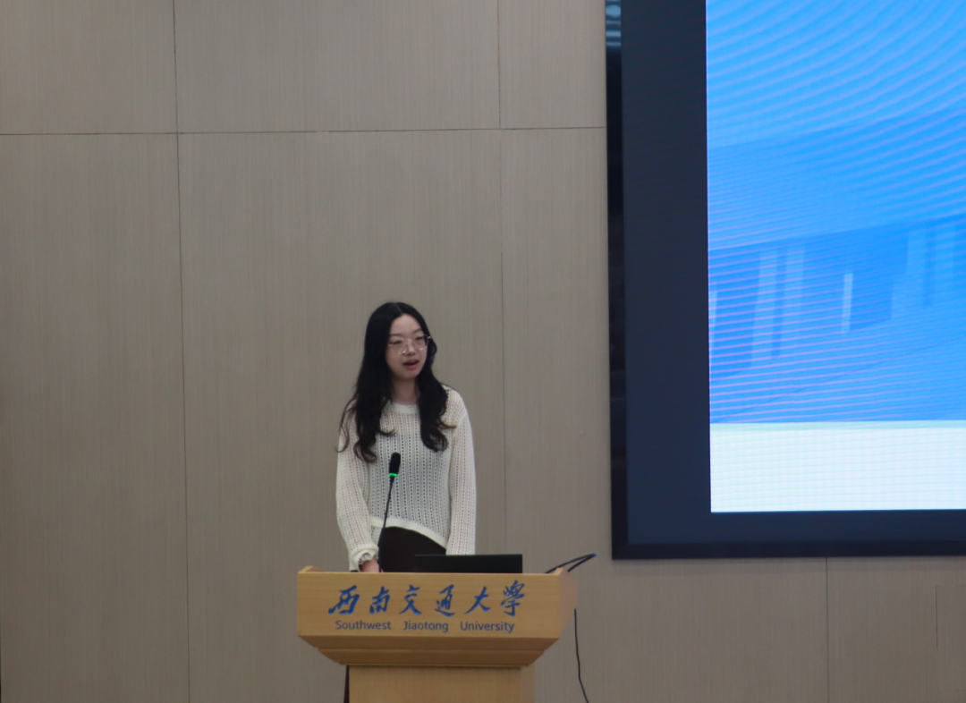 2022级数学与应用数学专业本科生代表李庶祎进行交流分享。她介绍了自己在大一阶段从“高中到大学”的适应与探索,大二阶段在“深耕”中积累能力,大三阶段在“规划”中明确方向,分享了在交大学习与生活的体验与感悟。