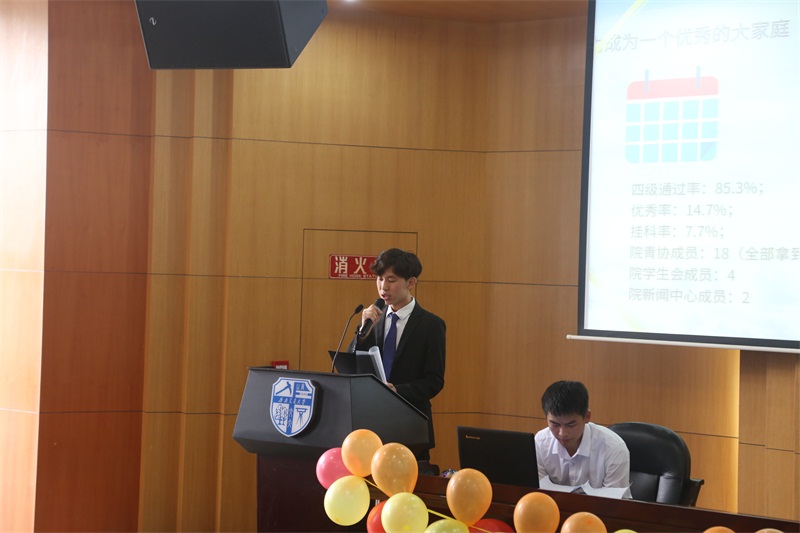 四个班级答辩结束后,2015级数学三班班长王调育同学上台与17级同学们分享了他们班级的发展历程。在他的答辩过程中,王调育为大家介绍了班级关于学风建设和活动组织的成功经历,让在座的大一同学们收获到了宝贵经验。