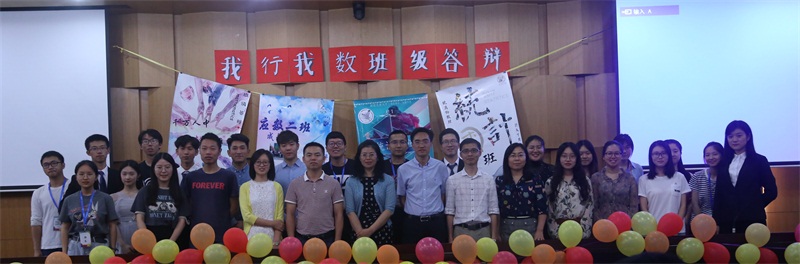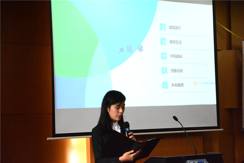 最后是统计二班的答辩。以“统万物数理,计天下周期,极目古今悠”的班级口号作为答辩的开场,答辩人刘炳言为大家讲述了统计二班和谐融洽的师生关系、同学关系,还有丰富多彩的寝室生活以及积极向上的学风建设。班级活动种类很多,有学院班级共同参加的各类比赛,还有Secret Santa、清洗校园雕像等活动。尽管课外活动丰富,但在学习方面统计二班也未曾有一丝一毫的懈怠。他们不仅组织了学习小组,还时常开办学习经验交流会,充分展示出班级在学与玩之间的平衡。《当你》的吉他声响起时,班内所有同学摇起手机灯光一起合唱,全场为之震撼。随后评委老师也对统计二班的精彩表现作出了点评,并且鼓励统计二班继续维持这种良好的班级氛围。