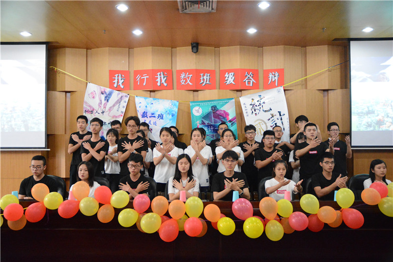 首先主持人为大家介绍了答辩的规则以及评分标准。第一个出场答辩的是统计一班。班长王朔作为答辩人,将班级口号“脚踏实地,眼望前方;志在心中,开创辉煌”的涵义贯穿其整个答辩过程。而充满活力的篮球赛、迎新晚会和拜访养老院等活动,都展示了班级独特的风采。接下来统计一班用告白气球的歌声演绎青春里美妙的相遇,之后的海草舞也展示了班级的无限活力。班级展示结束之后,评委老师建议在以后的班级建设中多开展与学科竞赛有关的团日活动。