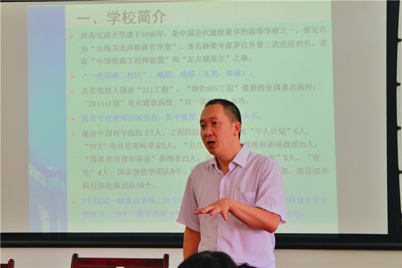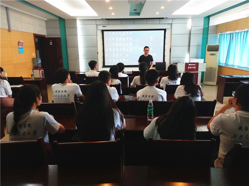 开营仪式后进行了学校和学院建设发展专题介绍。常务副院长杨晗介绍了数学院的教育概况,杨院长期望同学们积极利用参加夏令营的机会,开阔眼界,增长见识,充分了解西南交大丰富的科研资源,深刻感受数学院深厚的文化底蕴, 深入领悟数学在科技生活中的重要作用和无穷魅力。