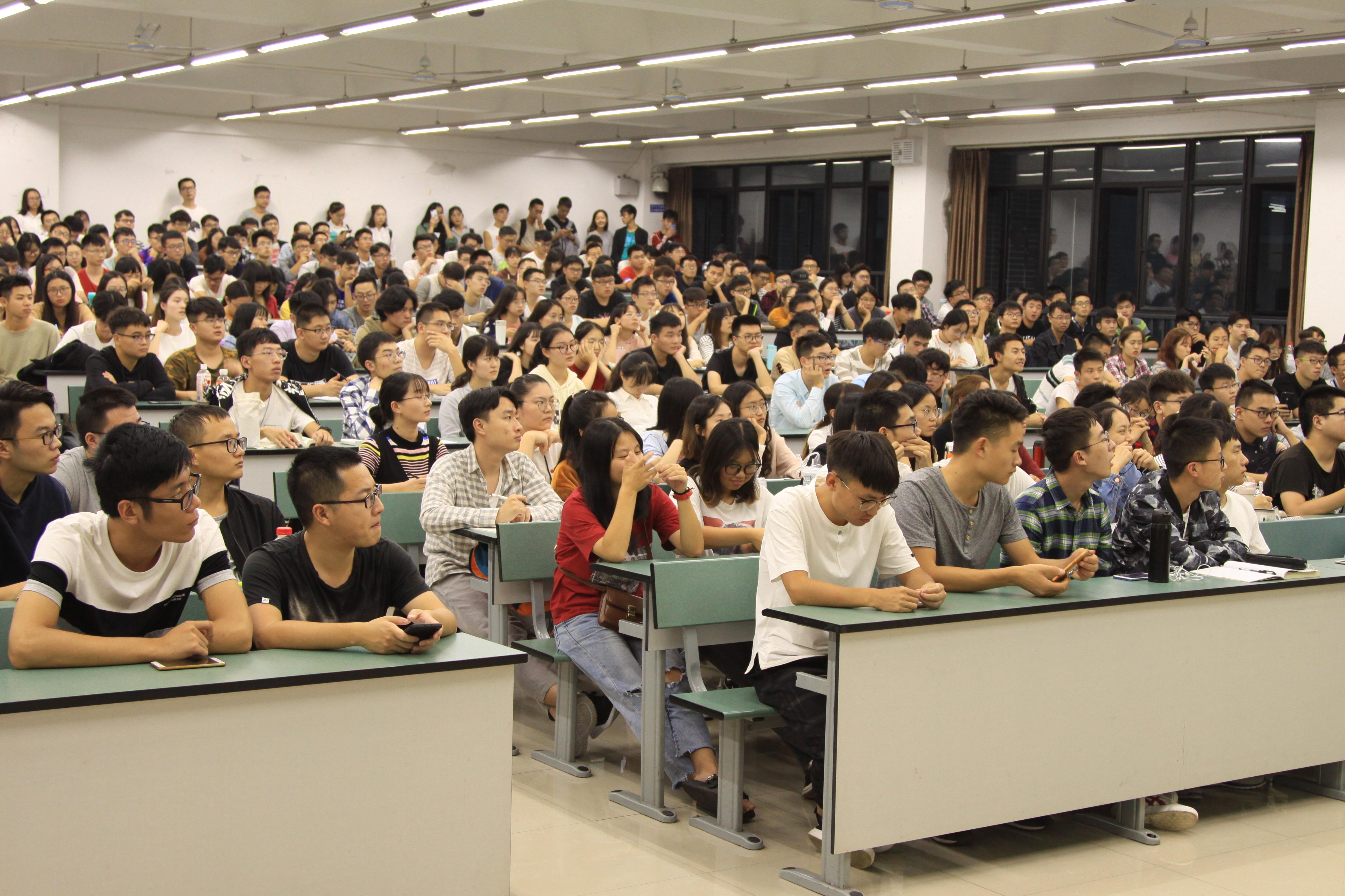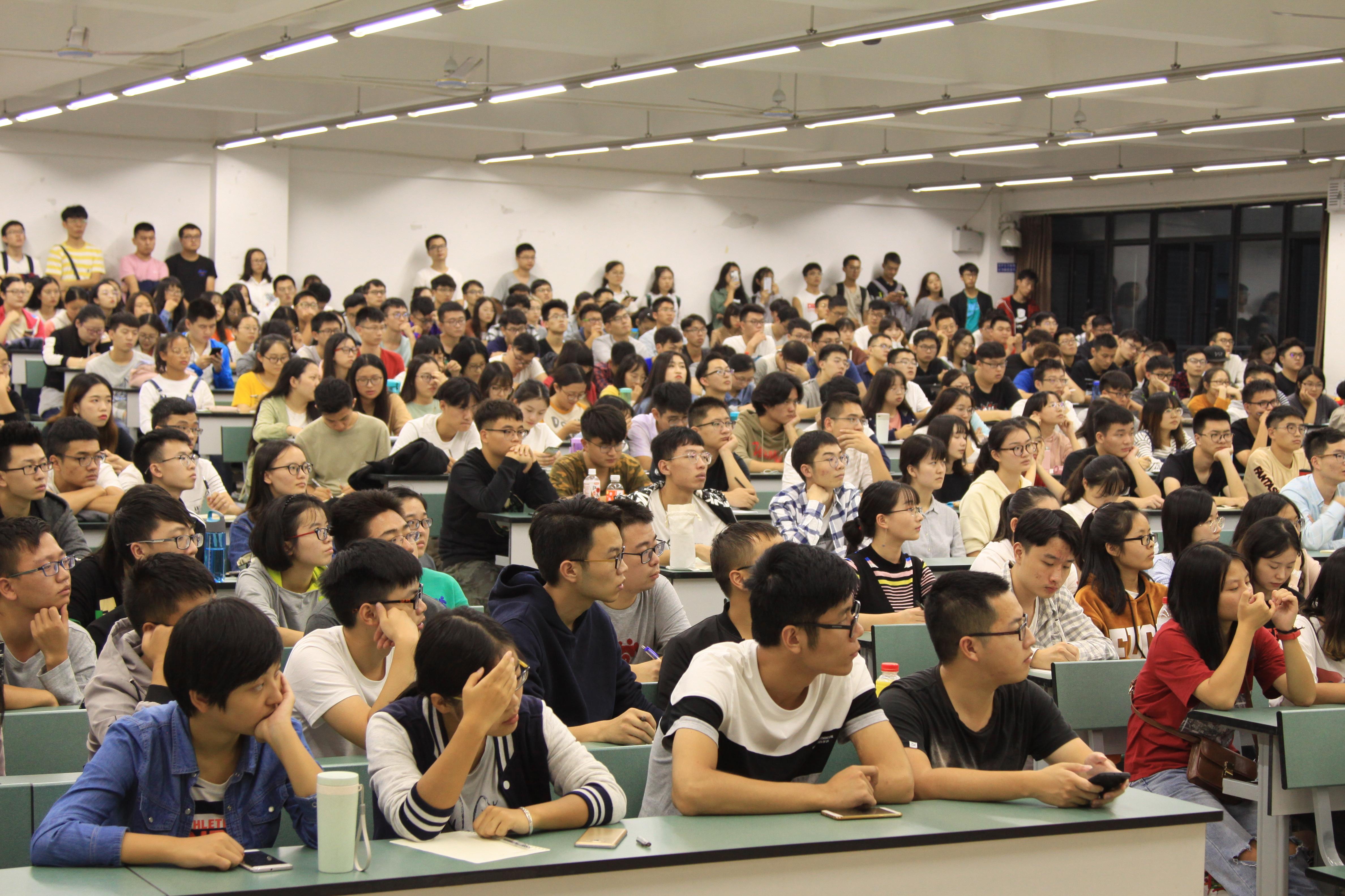 14日晚的讲座非常火爆,教室300余个座位早早被抢完,但同学们依旧源源不断地进入,甚至站立在教室之后听讲,可见同学们对本次讲座的热情。7点整,樊老师正式开始关于考研数学的讲解。樊老师首先简单介绍了考研的基本情况,从考研科目、考验热度和专业院校选择几个方面让大家了解了概况。随后,樊老师步入正题,先是为同学们推荐了考研数学需要准备的教材和辅导书,并解释了这些资料的处理方法,还为同学们列出了一个比较详尽的复习计划。
