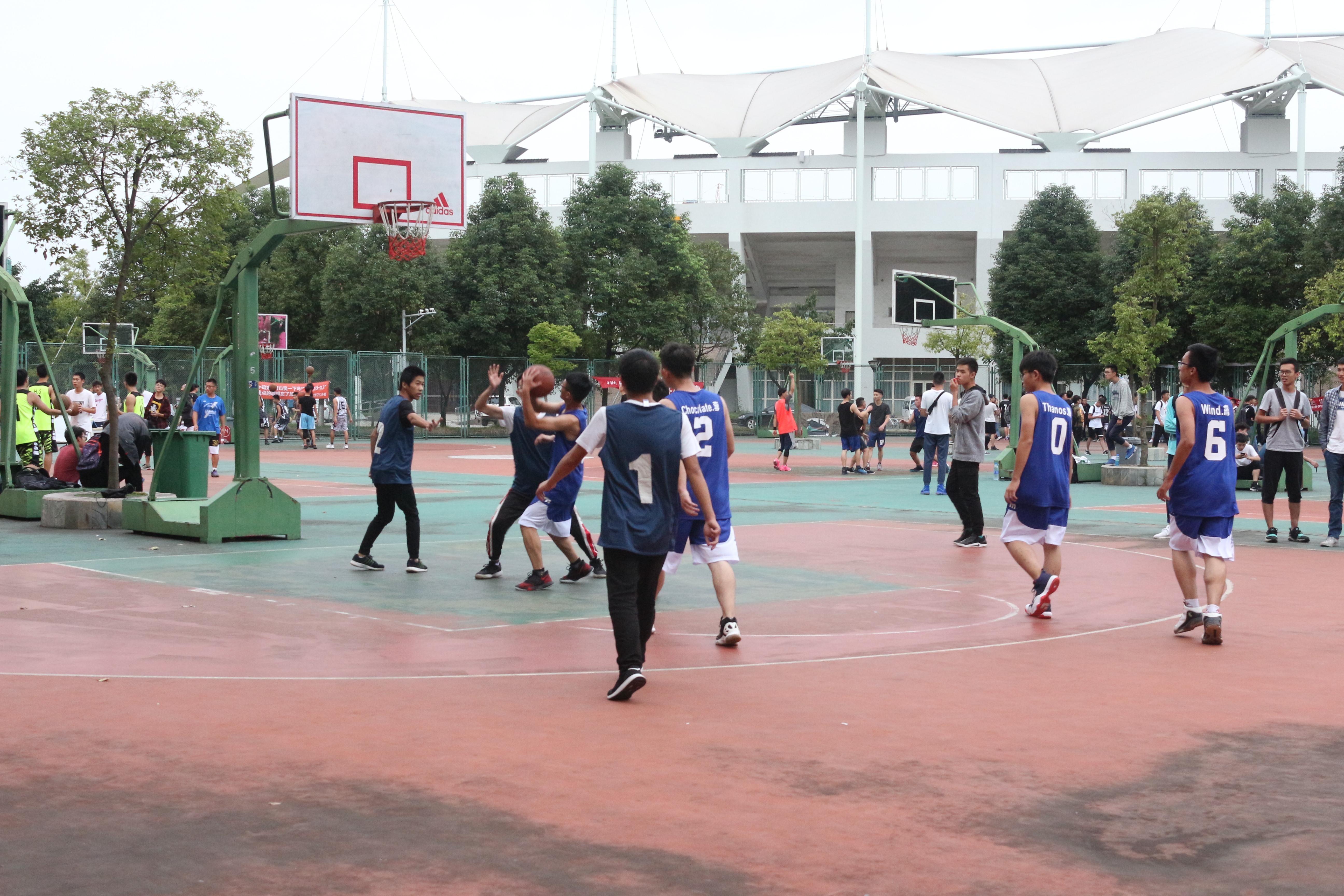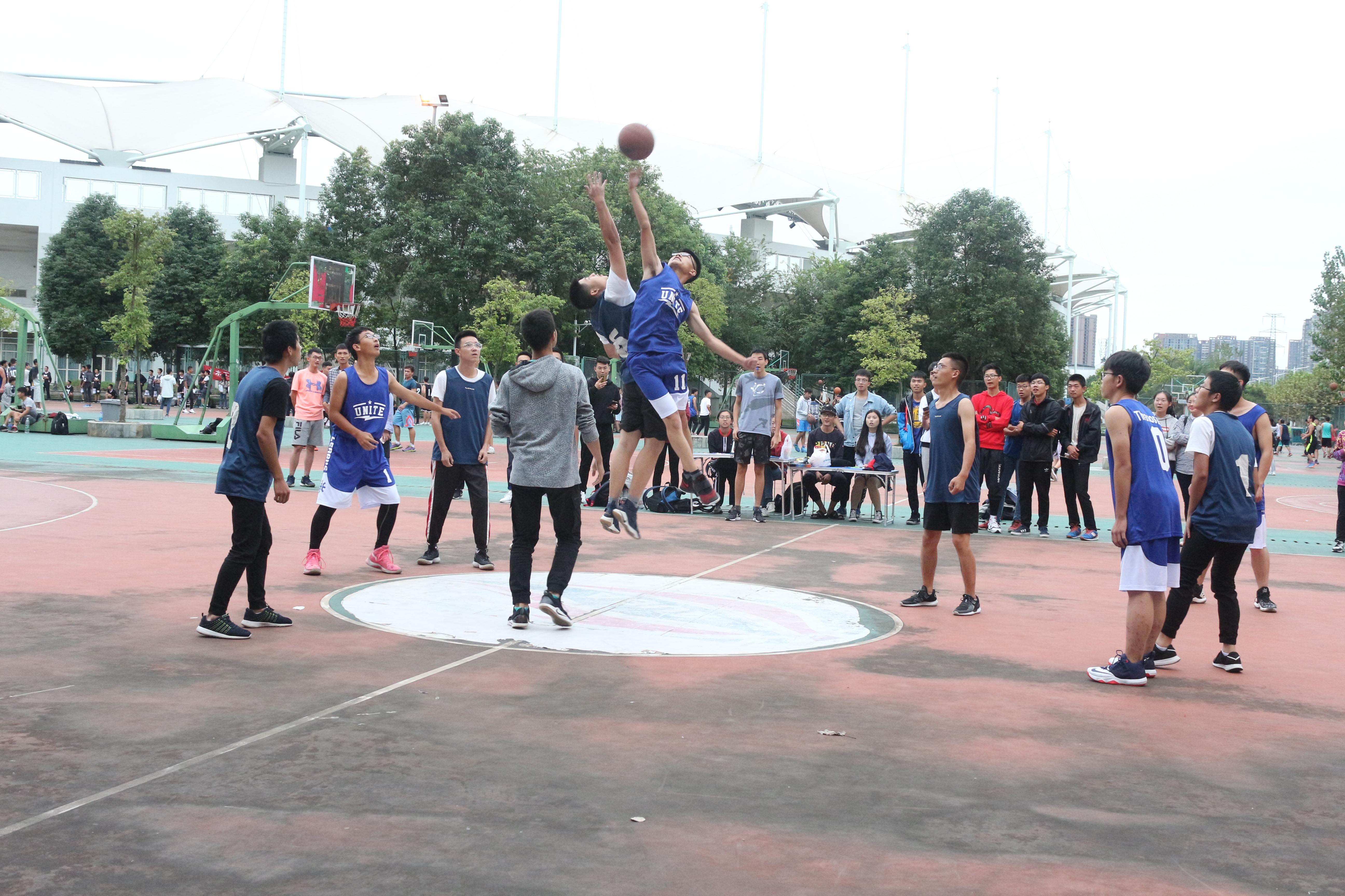 犀浦校区北区篮球场火热开战。本场比赛是统计一班对战统计二班,在紧张激烈的角逐中,最终统计一班以48:8的较大优势迎来了他们的首场胜利。