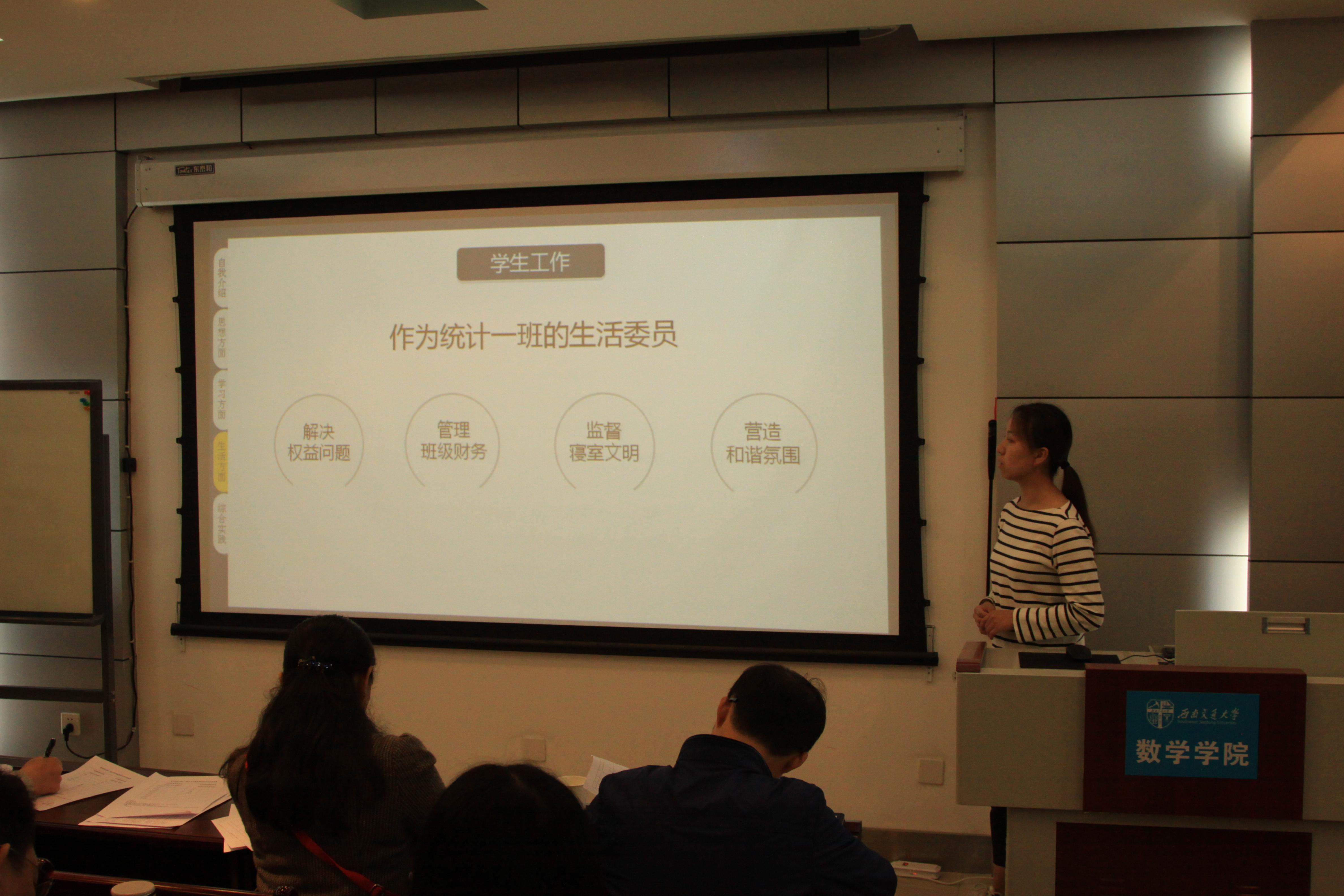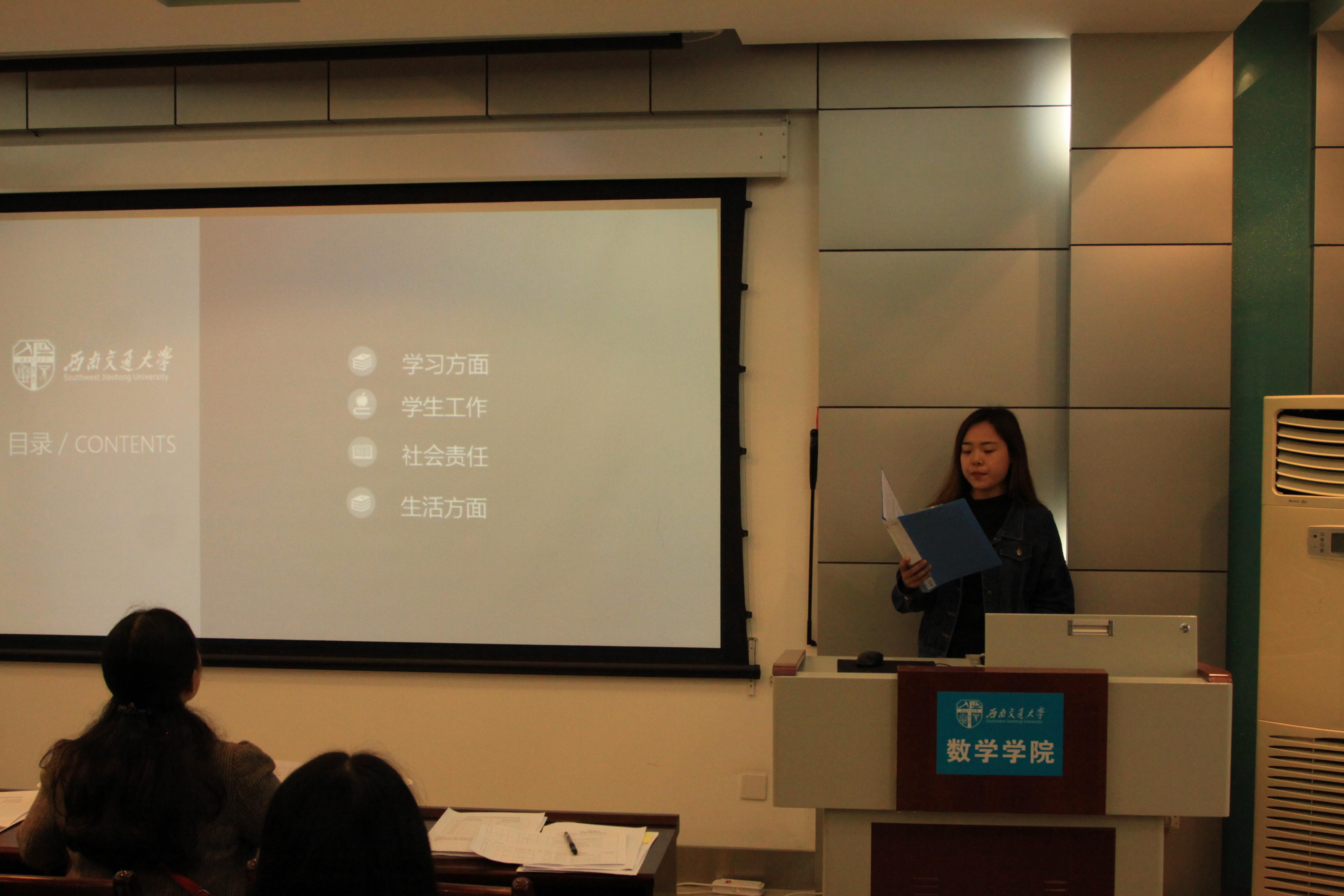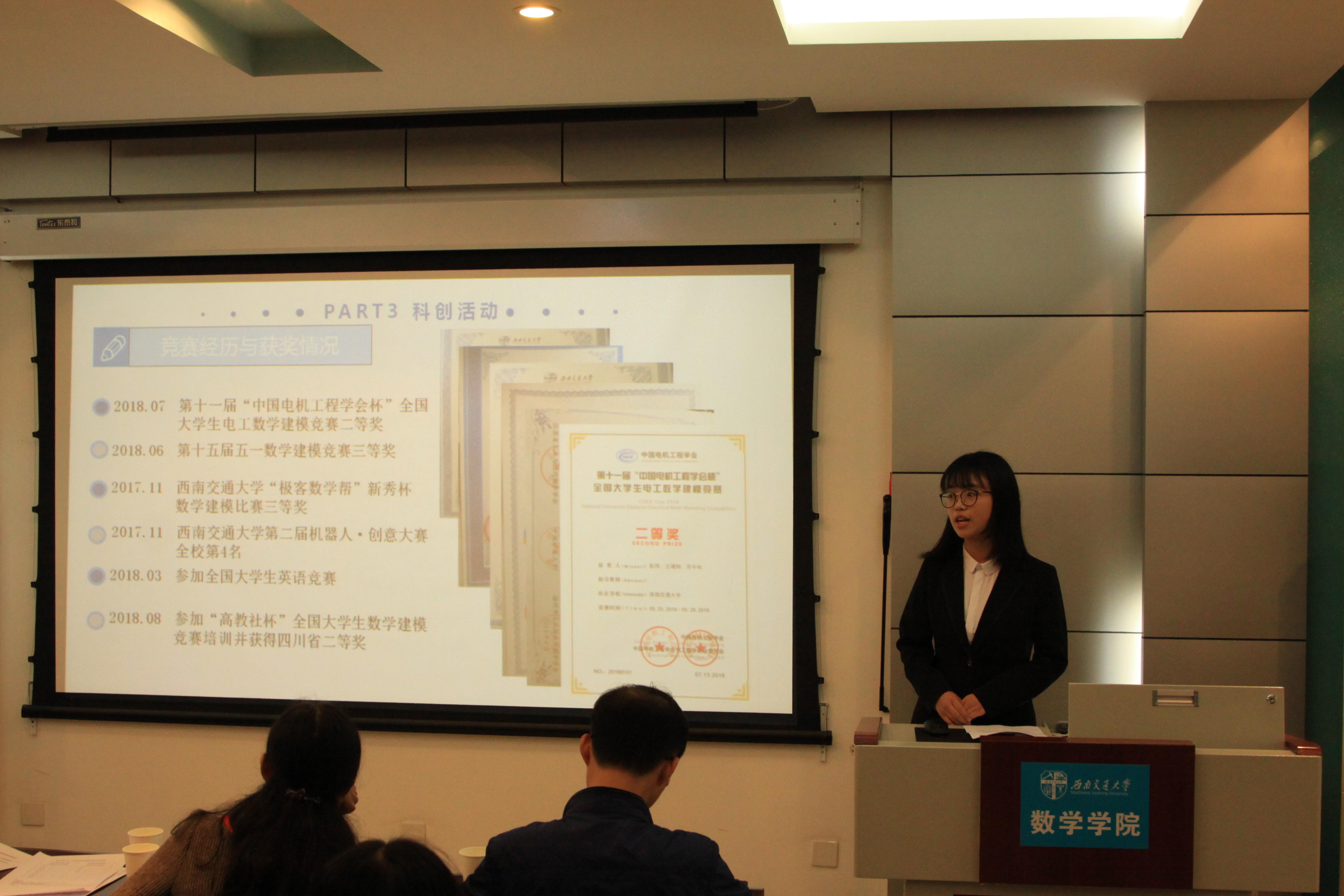 之后进行的是极客数学帮助学金的评定答辩,答辩者介绍了自己的家庭经济情况,也展示了自己在学校取得的一些优异成绩,同时表达了自己在日后继续奋发向上的决心。