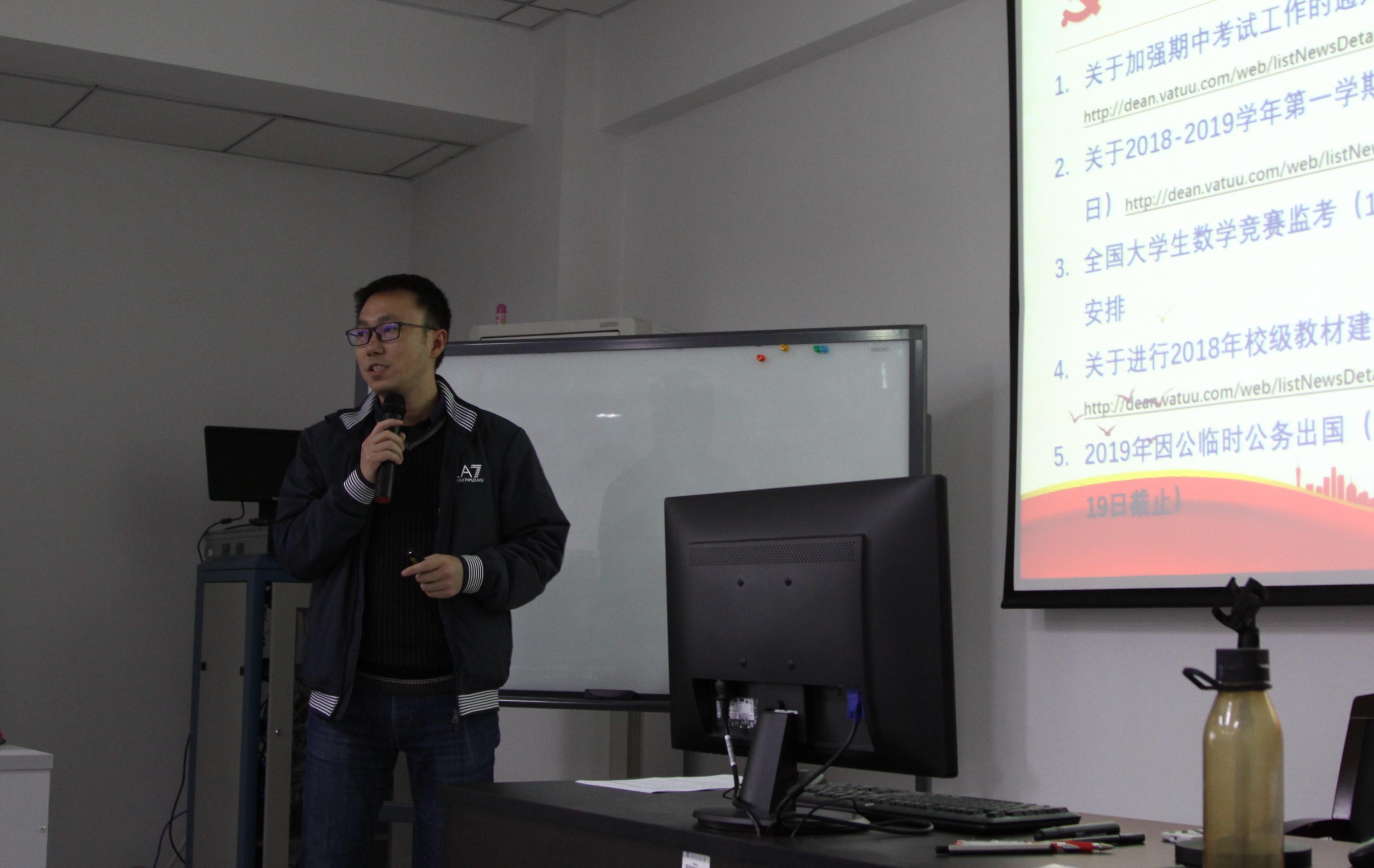 会议开始,副院长潘小东报告了本科教学及国际化近期工作安排,包括关于加强期中考试工作、本科教学期中检查安排、全国大学生数学竞赛监考安排、校级教材建设研究课题立项申报和对外学术交流合作计划等工作。