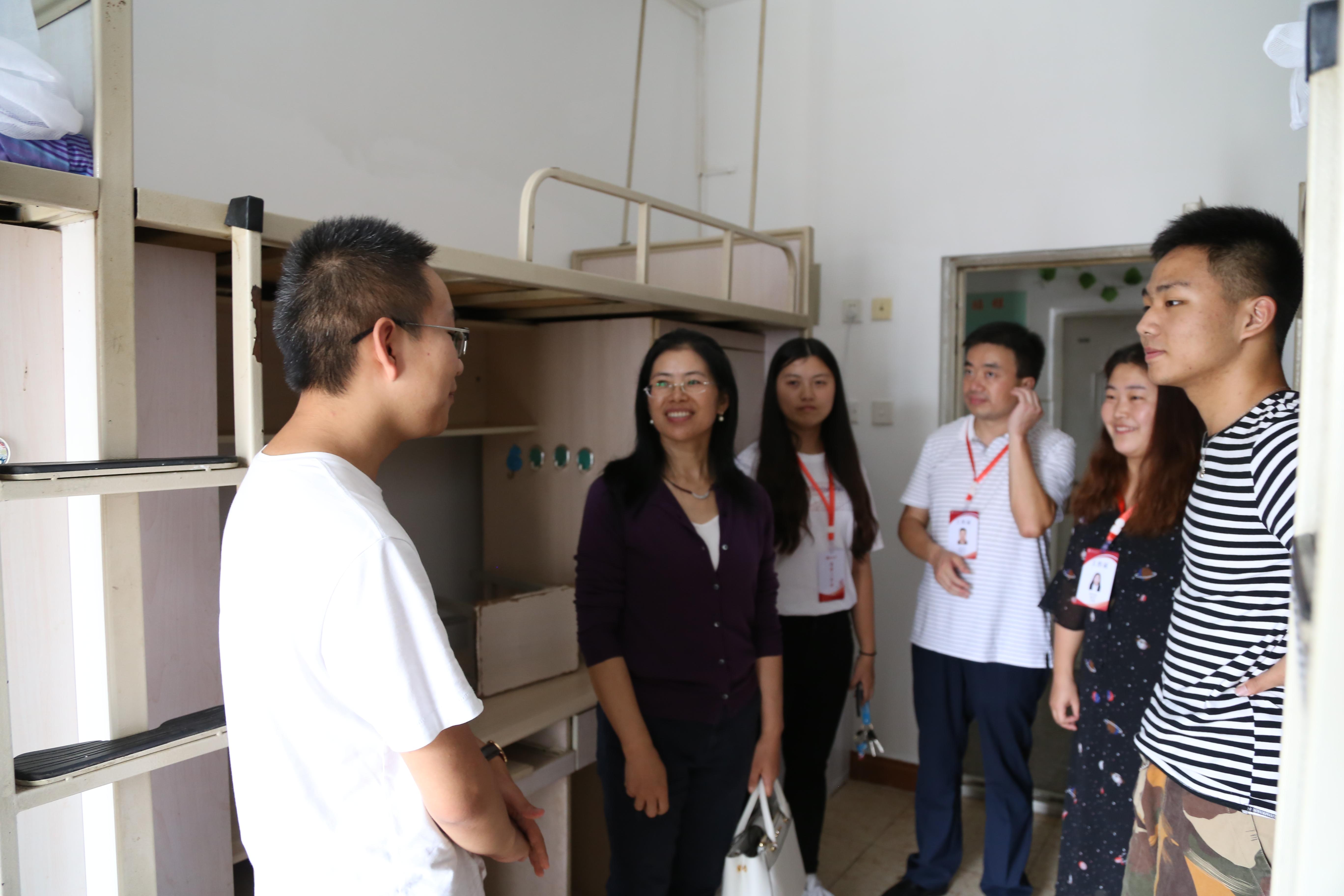 新生所在的寝室,看望刚刚入住的同学们。徐书记和黄祥副书记重点关注了寝室环境安全与卫生的保障,希望新同学们能够适应不同地区的气候,可以住在一个舒适的环境中。新同学们对于领导的亲切关怀也表示了感激。