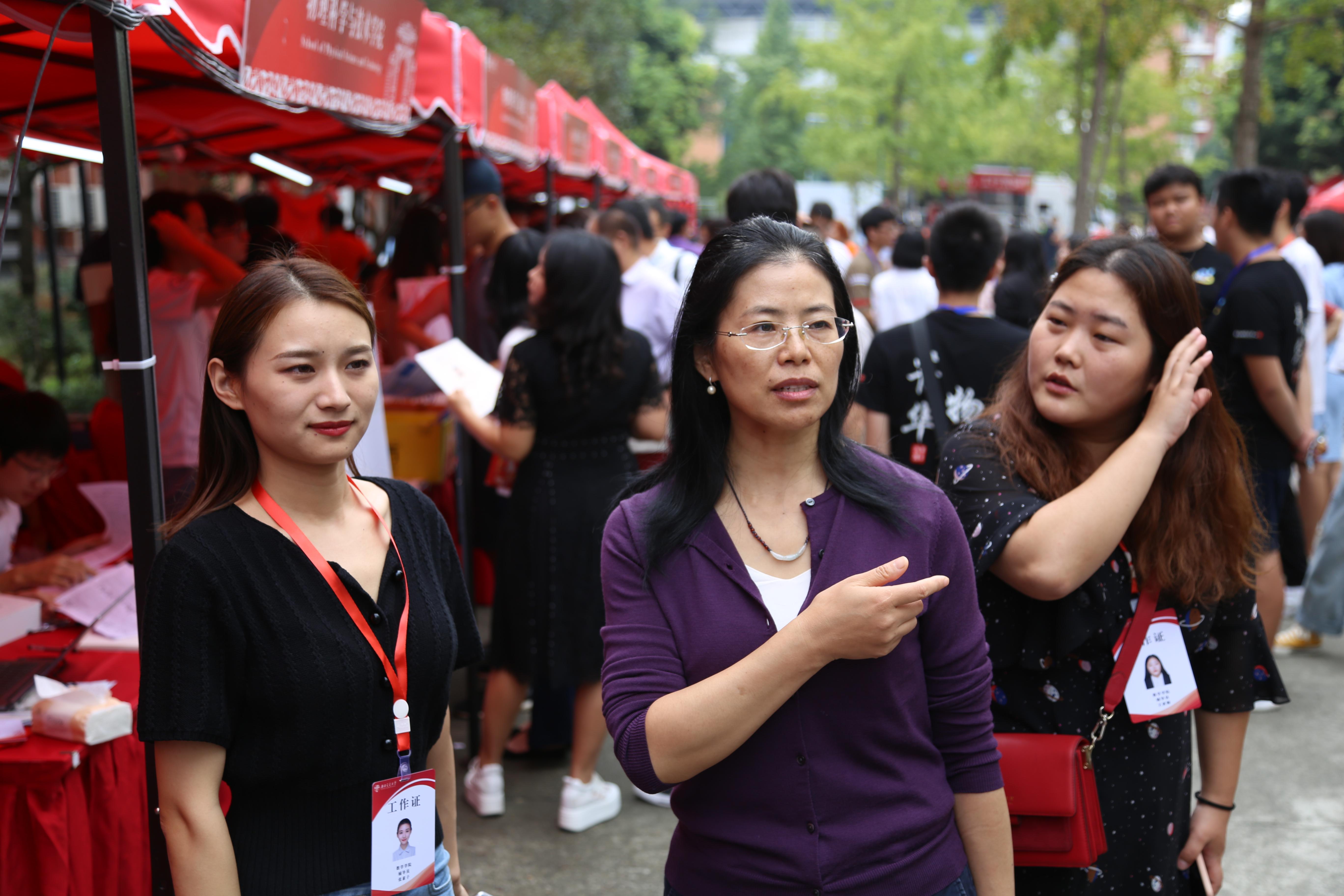 迎新点视察学院工作者的迎新工作。徐书记表扬了志愿者们热情的服务,并对学院设置的家长卡给予高度赞扬,认为此举能有效加强家校联系,帮助新生更好地融入大学生活。同时,黄祥副书记核对了已经完成注册的新生的数目,也对志愿者们的高效工作给予了肯定。