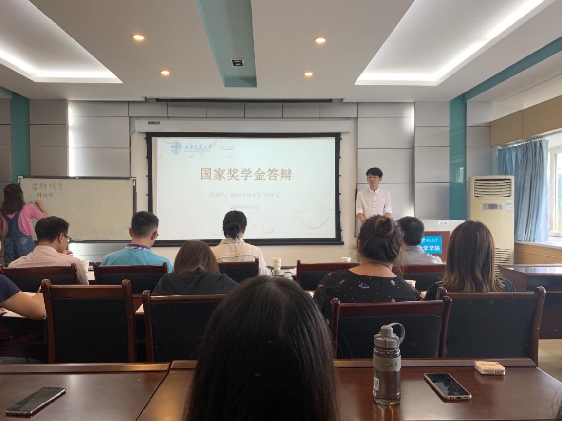 本科生奖助学金评审管理办法》,经过了发布通知、个人申请、辅导员资格审查、班级民主评议等环节,将各类奖学金的优秀候选人推选入答辩环节。本次答辩评审的奖项包括国家奖学金和感恩中国近现代科学家奖助学金。