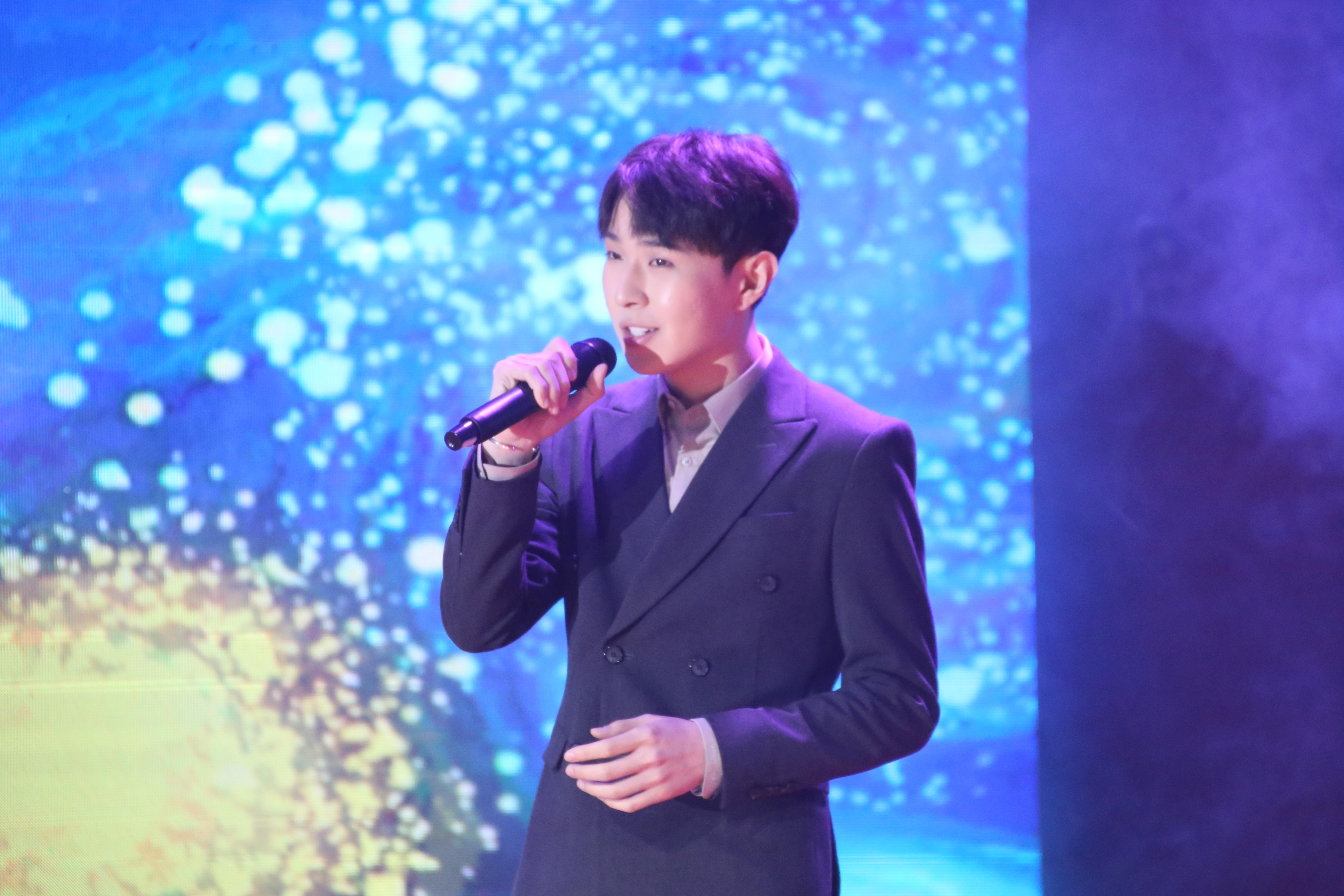 第十一个节目是2017、2019级辅导员张素子老师与特邀嘉宾——第十四届爱音乐校园歌手大赛冠军栾贻泽共同演绎的歌曲《屋顶》。“在屋顶唱着你的歌,在屋顶和我爱的人”,两人精湛的唱功引来了场上的阵阵欢呼与掌声,也让我们感受到了甜蜜与感动。