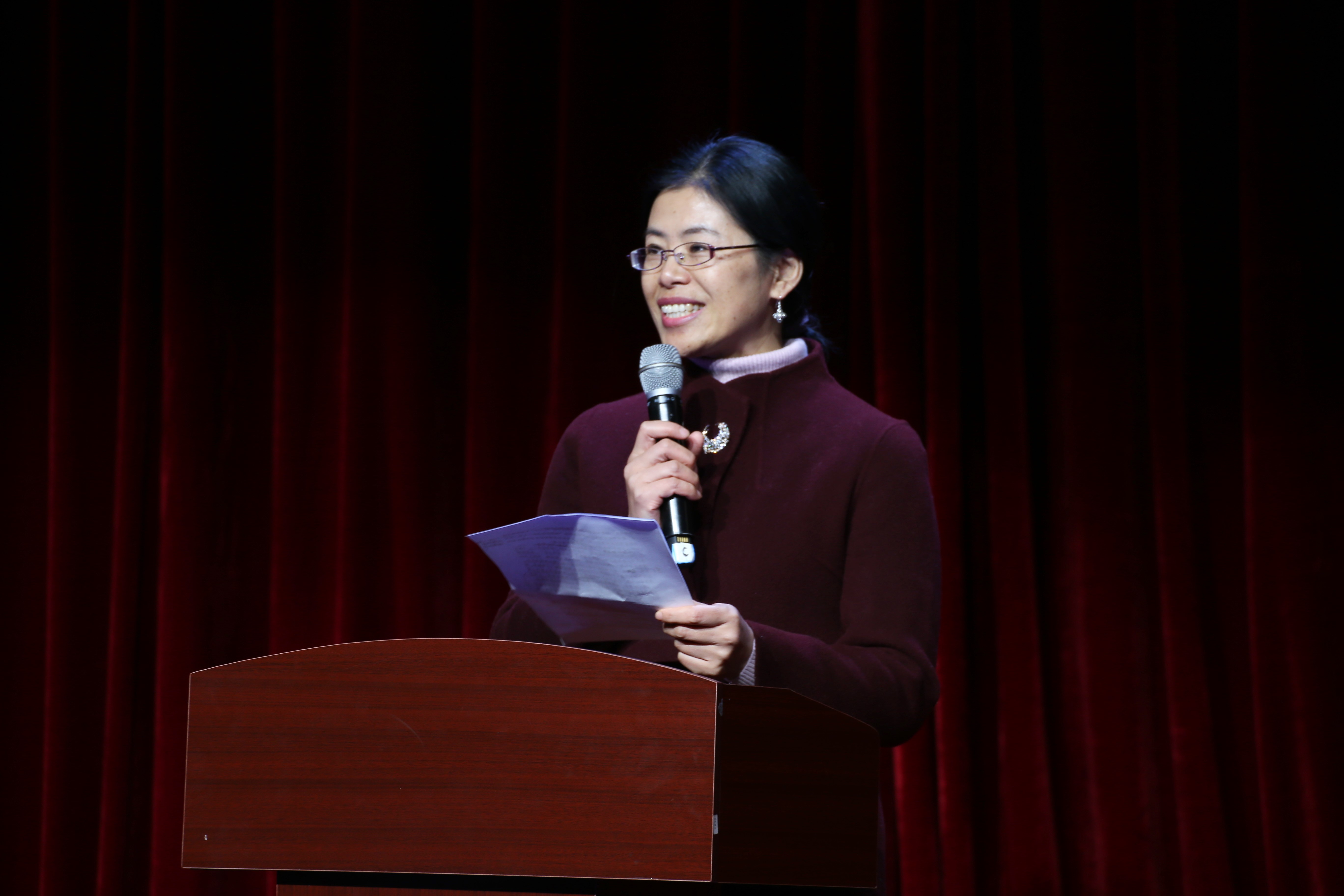党委书记徐革教授为迎新晚会致辞。徐书记首先对支持本场晚会的老师同学们表示了感谢,同时也阐述了“一见倾心,终数于你”这一主题的意义。接着,徐革书记总结了2019年学院取得的丰硕成果,从奖学金荣誉称号、科研竞赛到社会实践、出国就业,学院的每一位师生都同心共力,取得了突出的成绩。徐书记特别提到,荣获“竢实扬华奖章”的周小兰同学,是全体数院同学学习的榜样;苗浩冉、汪立言两位同学取得了全国大学生数学竞赛的决赛资格,这也是我校首次有同学进入数学专业组决赛,也希望数院学子能够在竞赛方面再创辉煌。