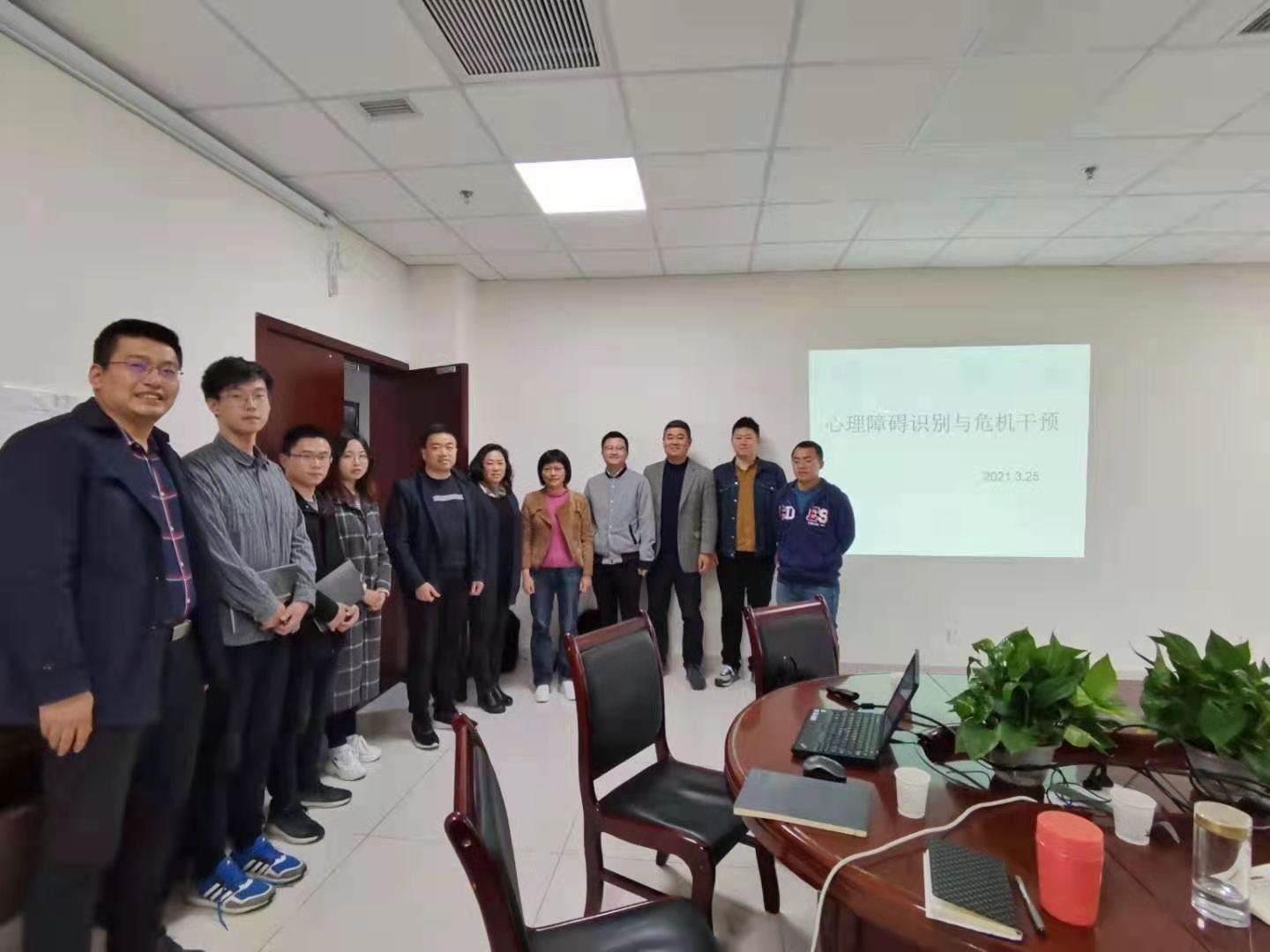 张学伟老师主要对大学生心理问题的常见类型及表现、大学生心理危机预警信号识别、心理危机干预一般技能等几个方面对心理危机干预工作进行深入的讲解。之后参会的老师进行了提问和交流。