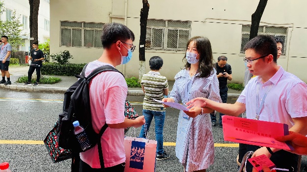 的党员志愿者们在迎新工作中也发挥了模范带头作用,积极报名参加迎新志愿服务工作。迎新第一天上午,党员同志们为新生介绍入学的基本流程,并引导他们顺利入住宿舍并介绍新生入学注意事项以帮助同学们尽早适应研究生生活。