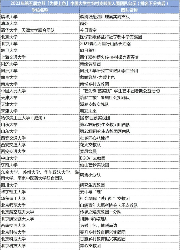 “阳光彩虹小分队”实践团队在200余所高校388支大学生团队中脱颖而出,成功成为“立邦 为爱上色”项目——为爱上色中国农村支教奖100支入围团队之一。团队也获得成人直播
