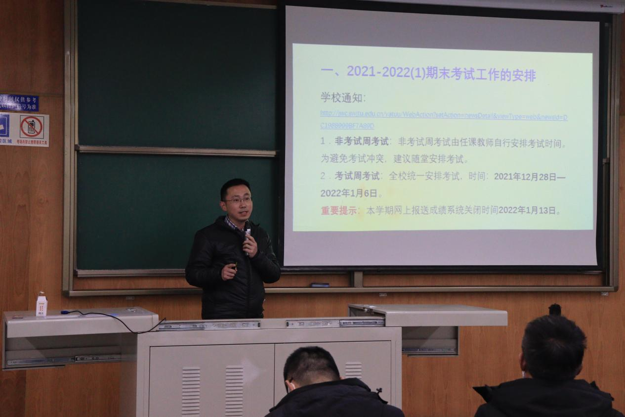 副院长潘小东汇报了学院2021年期末工作安排,并进行了学院课程思政教育汇报。