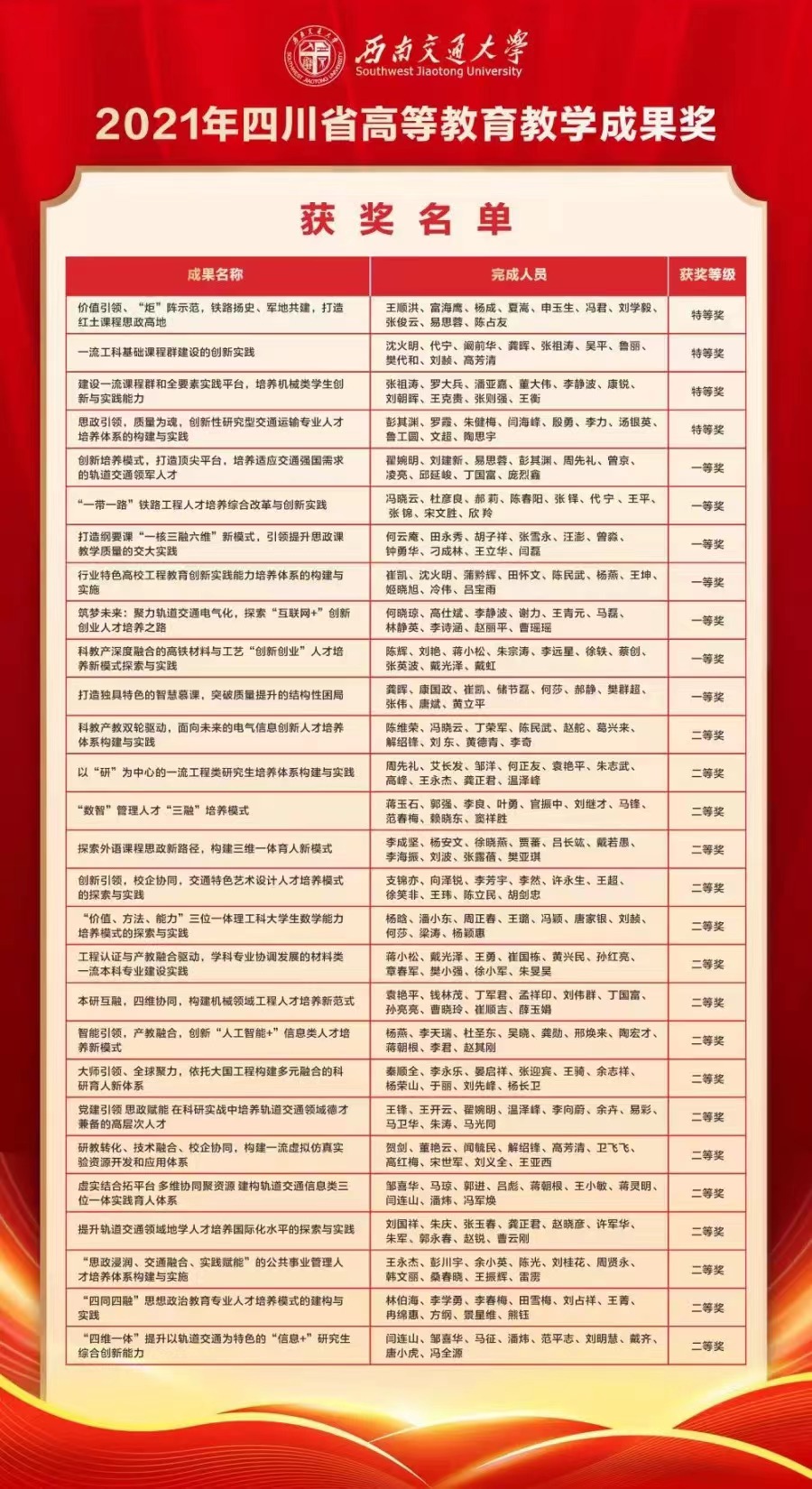 近日,四川省人民政府公布了2021年四川省教学成果奖名单,我校共获28项奖项。由成人直播