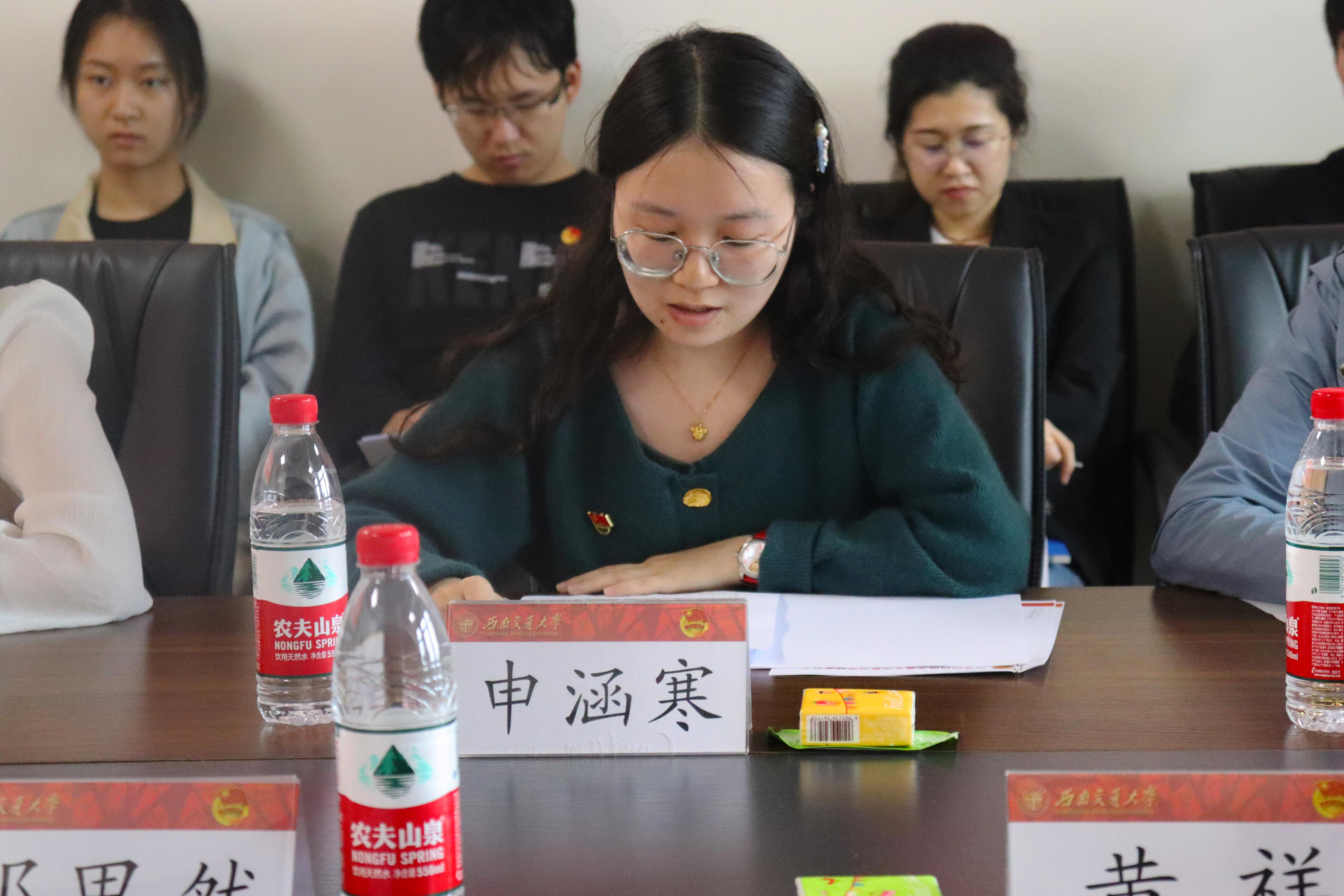 她首先汇报了学院共青团建设取得的出色成绩。她表示,院团委在校党委、校团委、院党委的领导下,围绕立德树人根本任务,强化团员思想引领,扎实开展育人实践工作,取得了良好的育人成效:学院8支队伍荣获团中央知行计划大学生优秀实践队称号,1名同学走进基层赴金牛区西安路街道办挂职锻炼,2名本科生投身西部计划参与学校研究生支教团,8名同学参与学校青马工程精英人才班、骨干人才班历练。这些优秀青年以自身的实际行动,影响着数院青年学子积极投身新时代的火热实践中,形成了一股强大的朋辈力量。