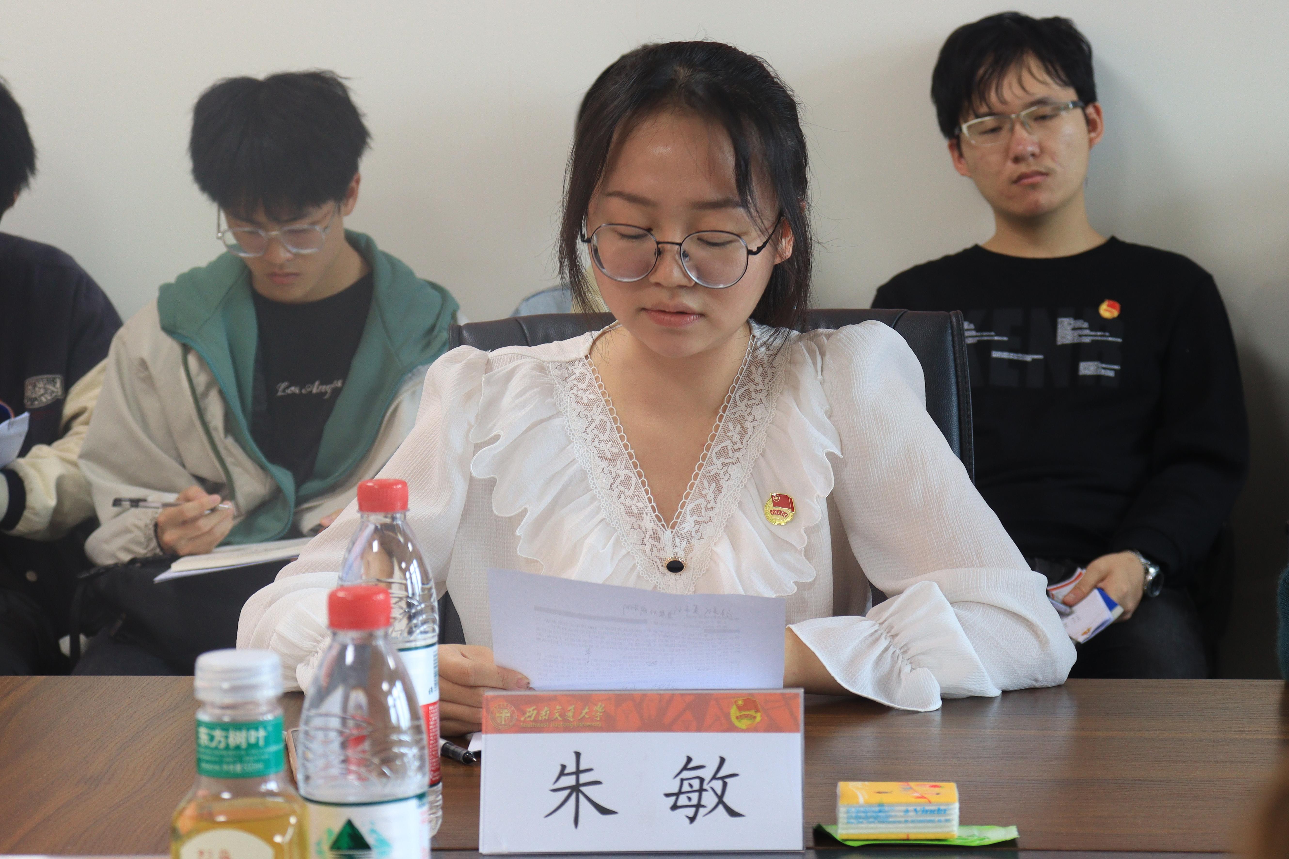 此外,她指出,院团委将继续对标做好改革工作,加强思想政治引领,依托“青年大学习”、校院两级“青年讲师团”做好理论宣讲;坚持从严治团,打造校院示范团支部梯队,扎实推进学生组织的改革;不断完善“推优入党”工作机制,依托青马工程做好学生干部的培养。最后,邓思然向学院党政领导对共青团事业的长期关心表示了由衷感谢。