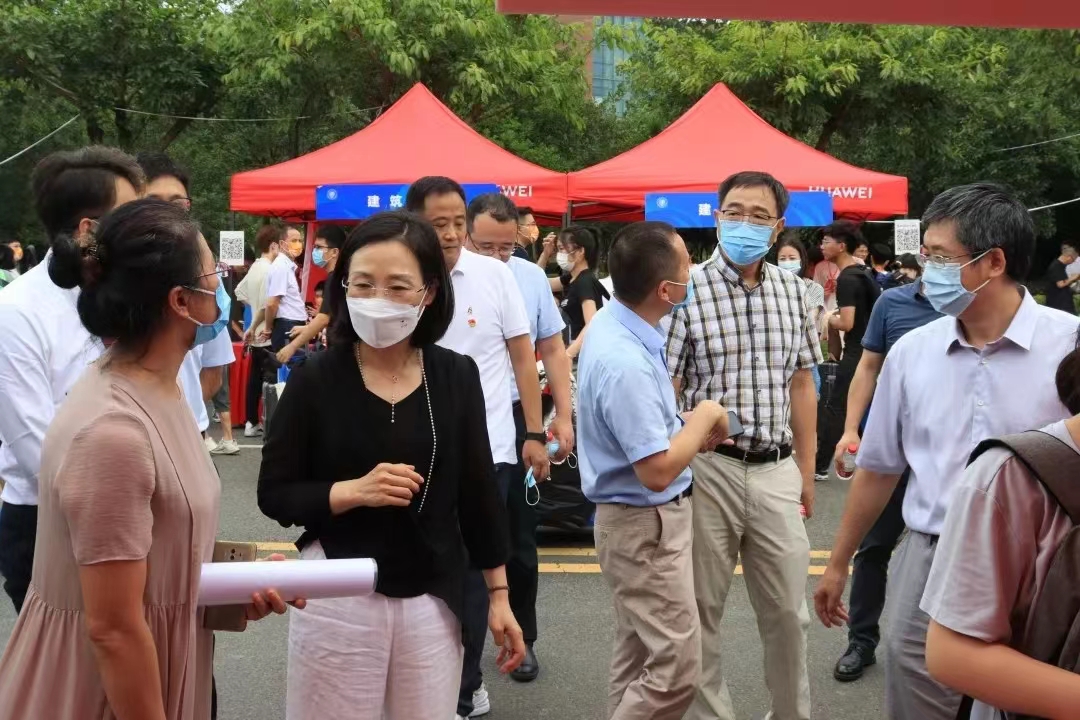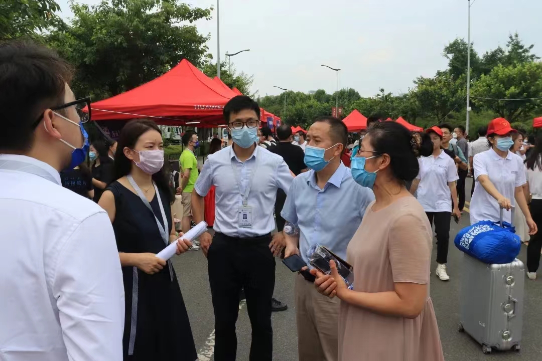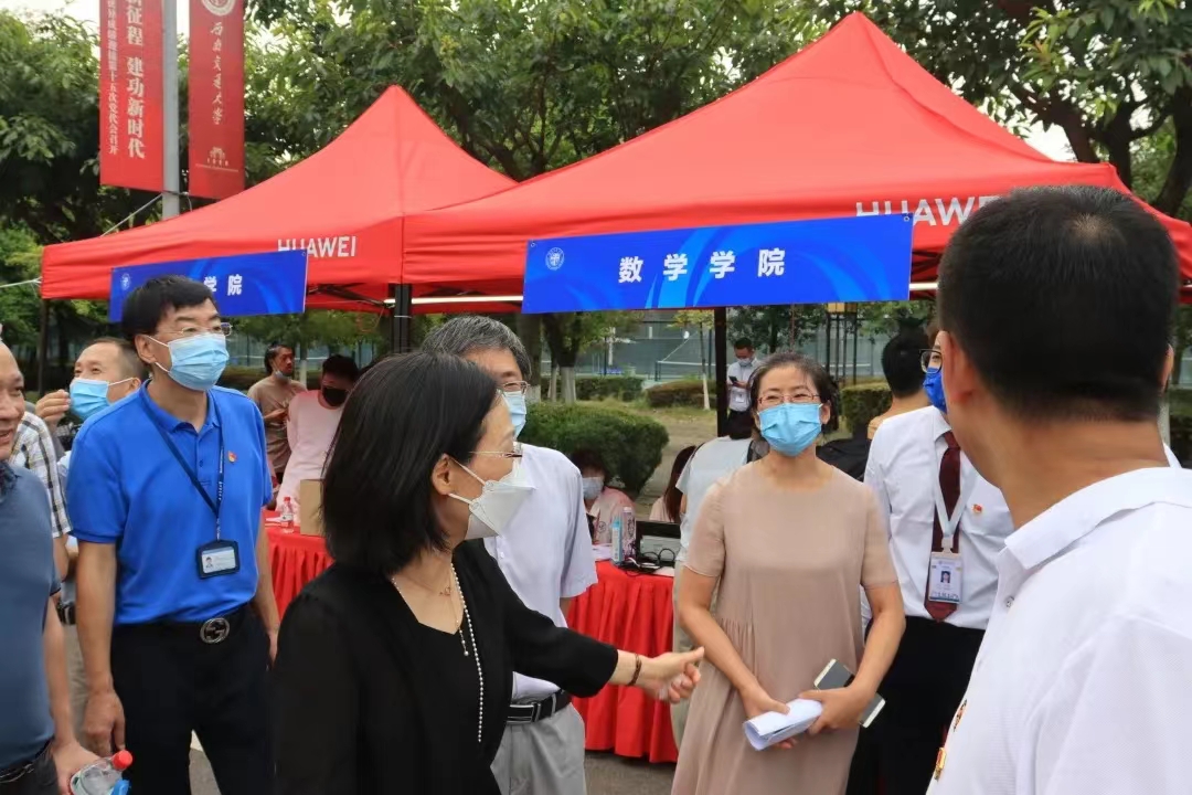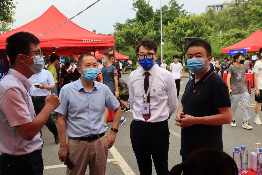 迎新点,亲切走访慰问迎新的师生、志愿者,深入了解学院迎新工作的开展情况并对学院的迎新工作给予高度评价。