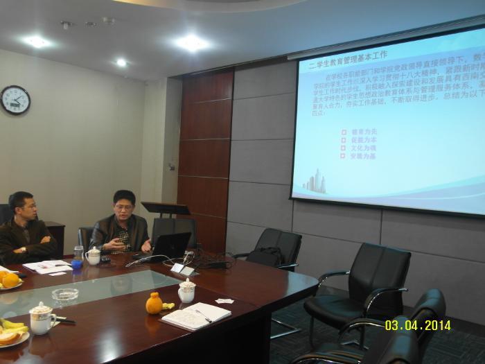 At half past two in the afternoon, the deputy secretaries of UESTC, SWJTU, SCU and SWUFE got together in the office of UESTC. The secretary of UESTC party committee also attend the conference. At the beginning, secretary Sun show his welcome to the arrival of the deputy secretaries. And then secretary Sun threw light on the significance and importance of the conference. Besides, Sun said that the similarity of their work brought them more problems. He hoped that every secretary can share his ideas and experience.Then, the four vice secretaries made a discussion about the work of students. First Tan mengnian, vice secretary of academy of math in Sichuanuniversity, made a basic explanation about the work of academy. And he emphasized the academic exchange and the cultivation of innovative talents.Hu Jianjun, vice secretary of academy of economy in Southwestern University of Finance and Economics, made an explanation about subject construction and students’ work. Every secretary present thought highly of his instructive and serviced students’ work. Next, Li Zhihui, the vice president, focused on introduction of academy, management of education and the highlights of work. During the speech of secretary Li, the atmosphere of the seminar rose highly. Aimed at some problems, the four expressed their own ideas freely and talked with each other gladly. At last, Zhang Zhebao, vice secretary of academy of math in university of Electronic Science and Technology, made an essential talk about The Construction of Teaching Spirit and Research Training. Meanwhile, he shared some successful experience. In addition, secretary Zhang introduced their Micro message platform to provide more service for students.
