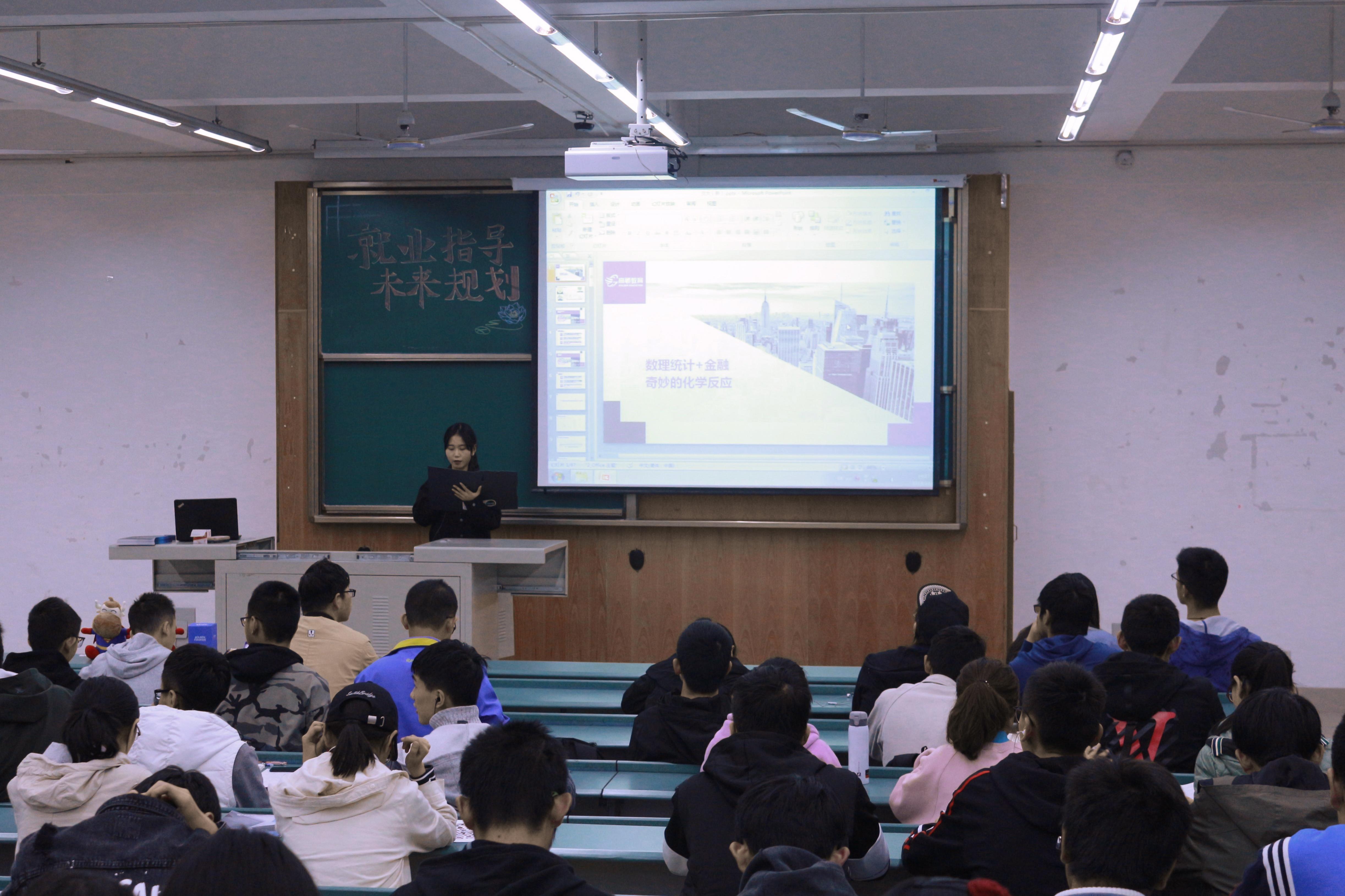 On November 6, at 7:30 PM, the career planning lecture of the school of mathematics was successfully held in X4352. This lecture will be given by Mr. Su mingwen who is currently a lecturer in the CFA/FRM institute of gaotong finance.