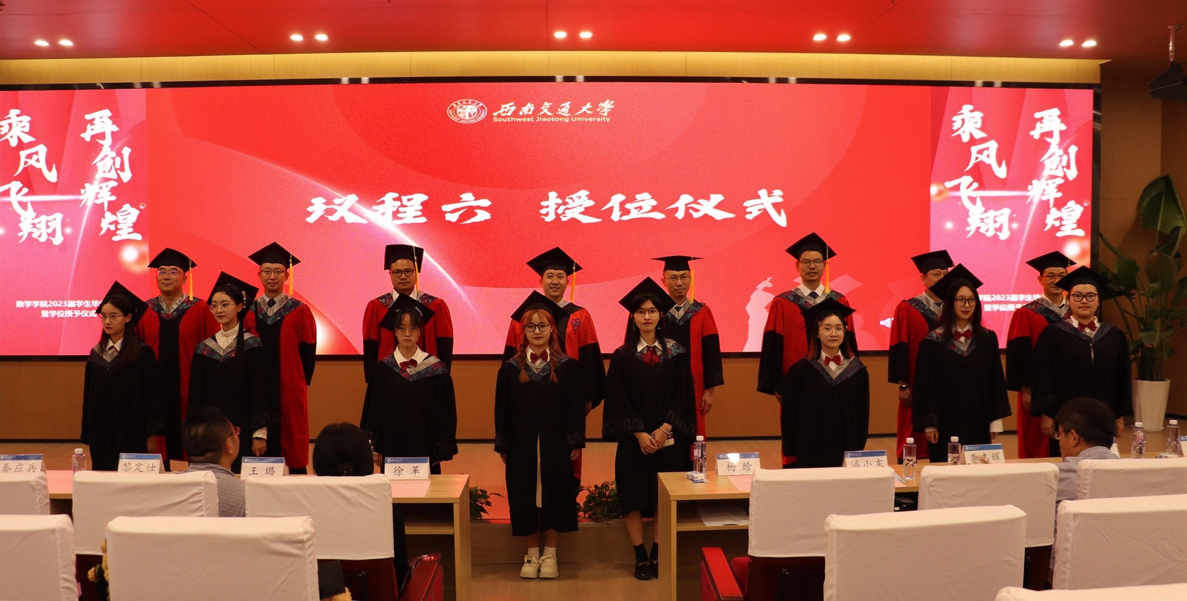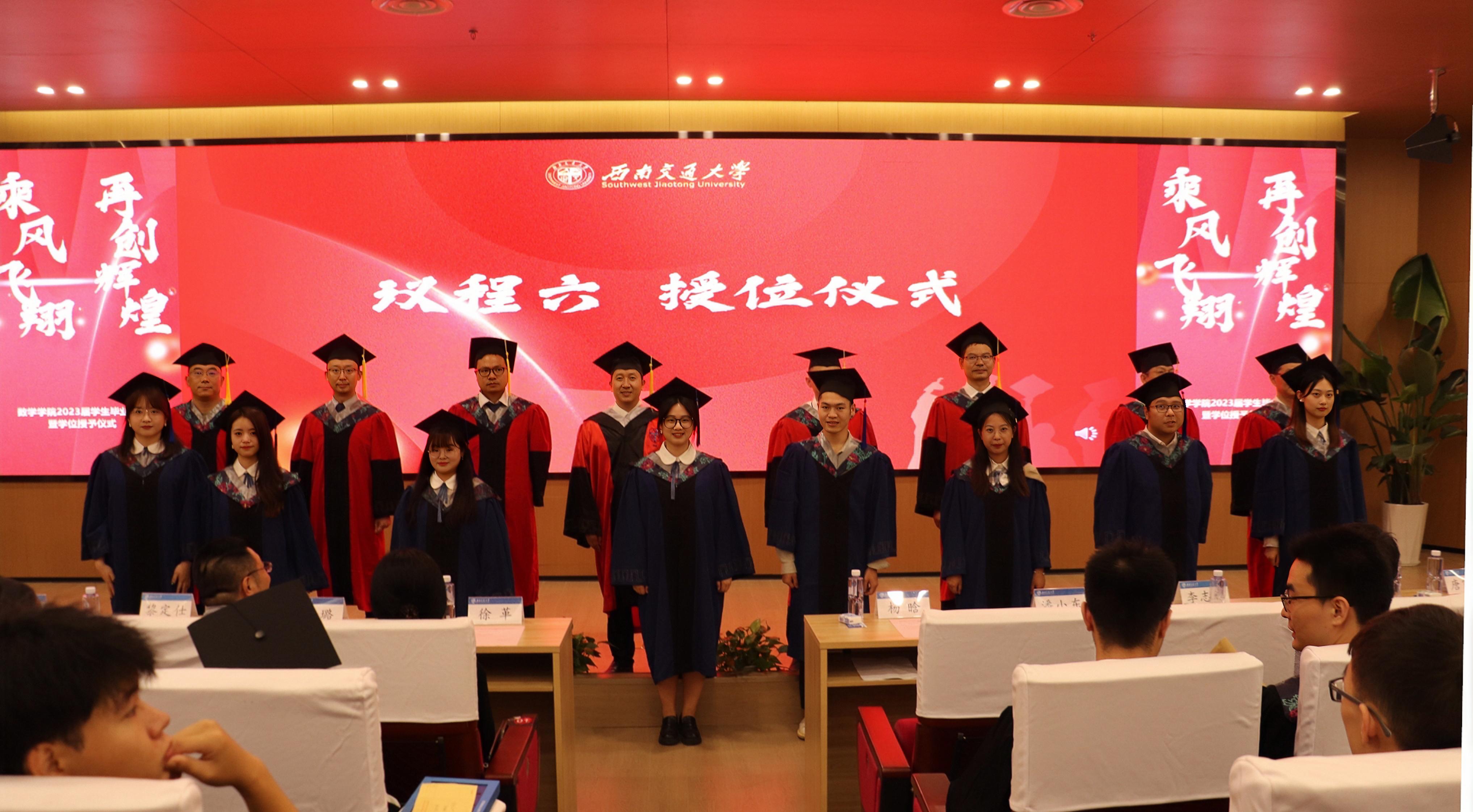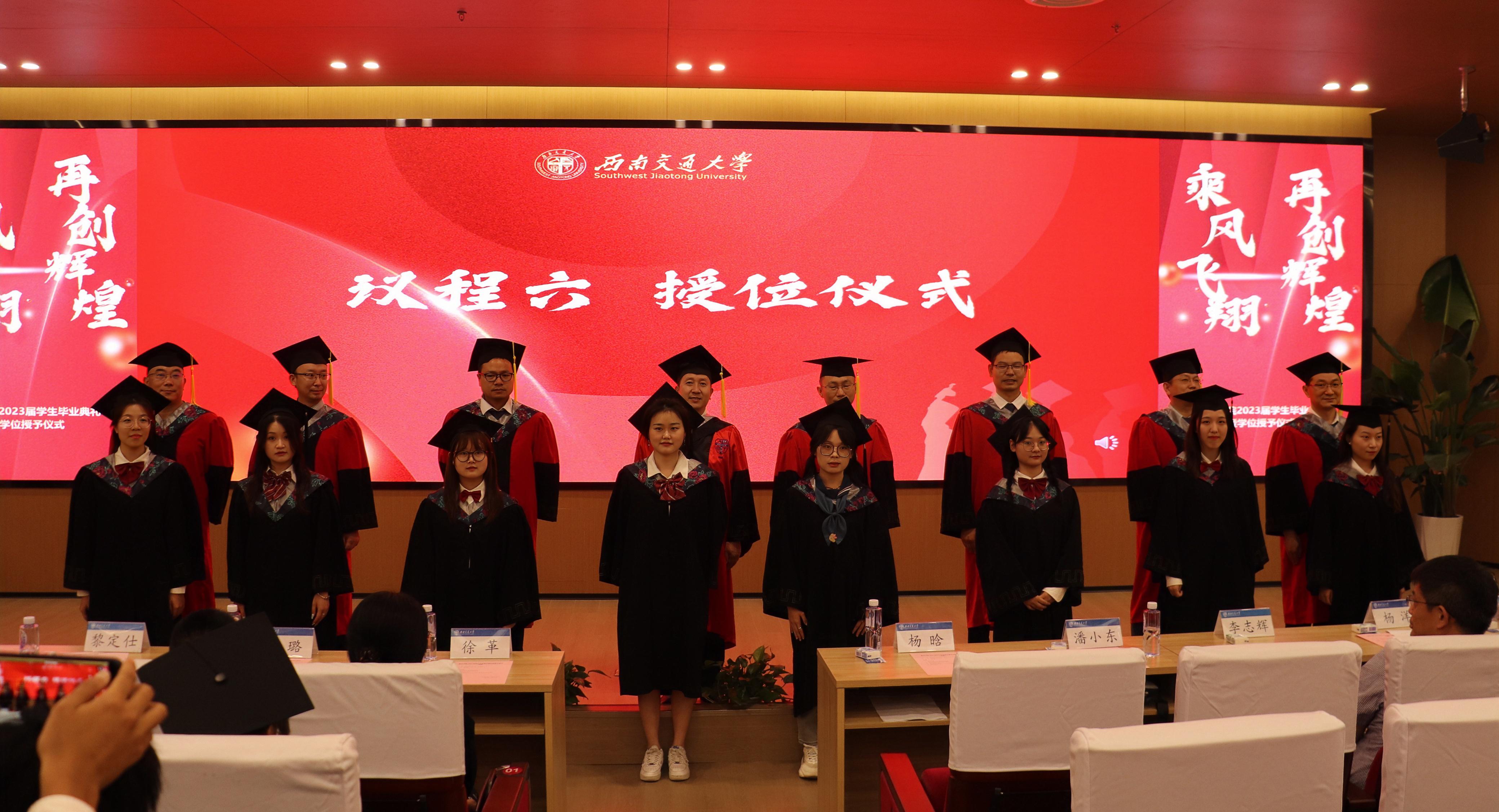 杨晗教授、黎定仕教授、杨洋教授、范小明教授、潘小东副教授、刘品副教授、唐家银副教授、罗荣副教授到主席台前为全体2023届毕业生授位