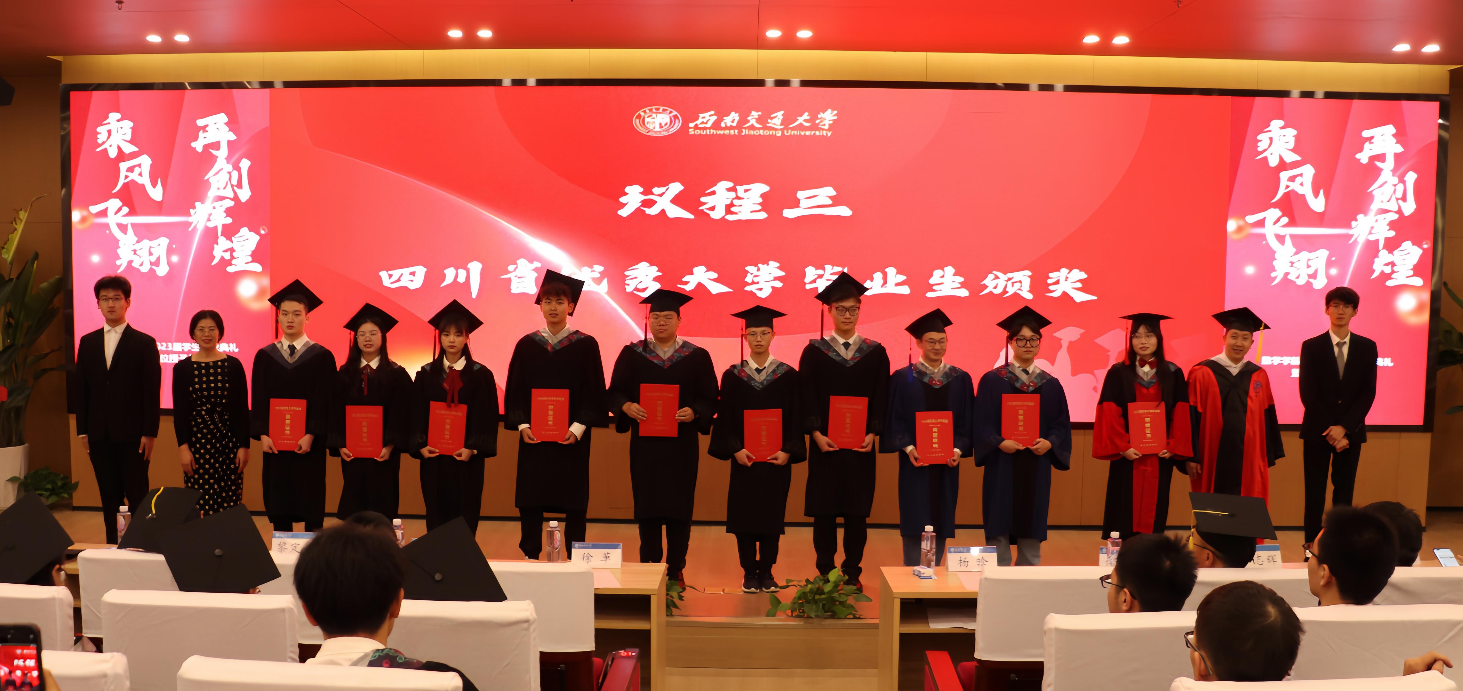 典礼第二项,徐革书记、杨晗院长为四川省优秀大学毕业生曹家琪等十名同学颁奖。