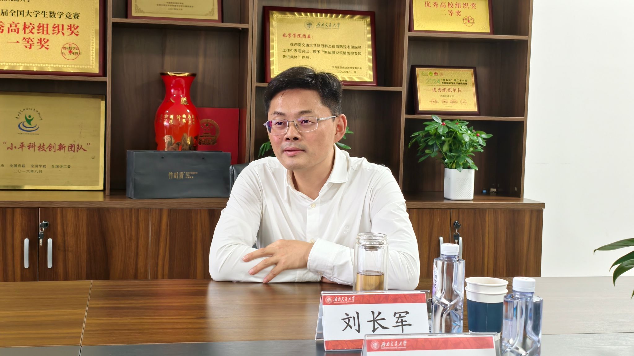 报告会前,校党委常委、副校长刘长军与田野院士进行深入座谈交流。刘长军对田野院士来校表示诚挚欢迎,介绍了学校发展历程及近年来在教学科研、人才培养等方面取得的成就。田野院士肯定了数学学科的显著进步,指出要加强学术交流,开拓学术视野,促进科研合作。
