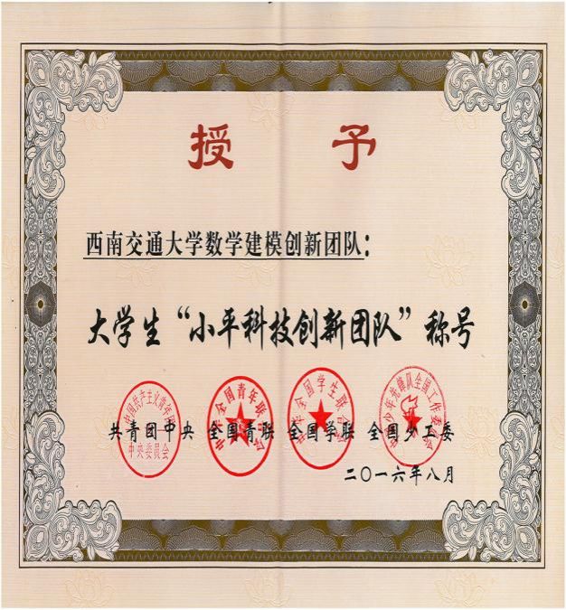 4.数学建模团队荣获共青团中央“小平科技创新团队”荣誉称号;